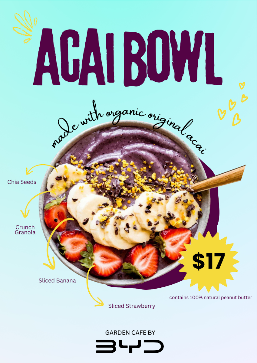 The menu at Garden Cafe by BYD offers a variety of options suited for breakfast, coffee breaks, and light meals. It is organized into several groups to accommodate different tastes and preferences.